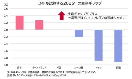 IMFが試算する今年の生産ギャップ(潜在的な供給力と生産量の差)を見ますと、日本とオーストラリアでプラスな一方、米国はほぼ均衡、ドイツなどユーロ圏はマイナスと需要の強さに地域差があります。