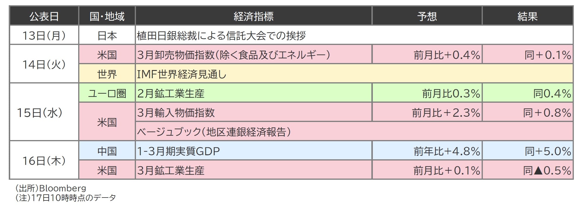 先週は、植田日銀総裁による信託大会での挨拶や、IMFの世界経済見通しに注目しました(図表1)。