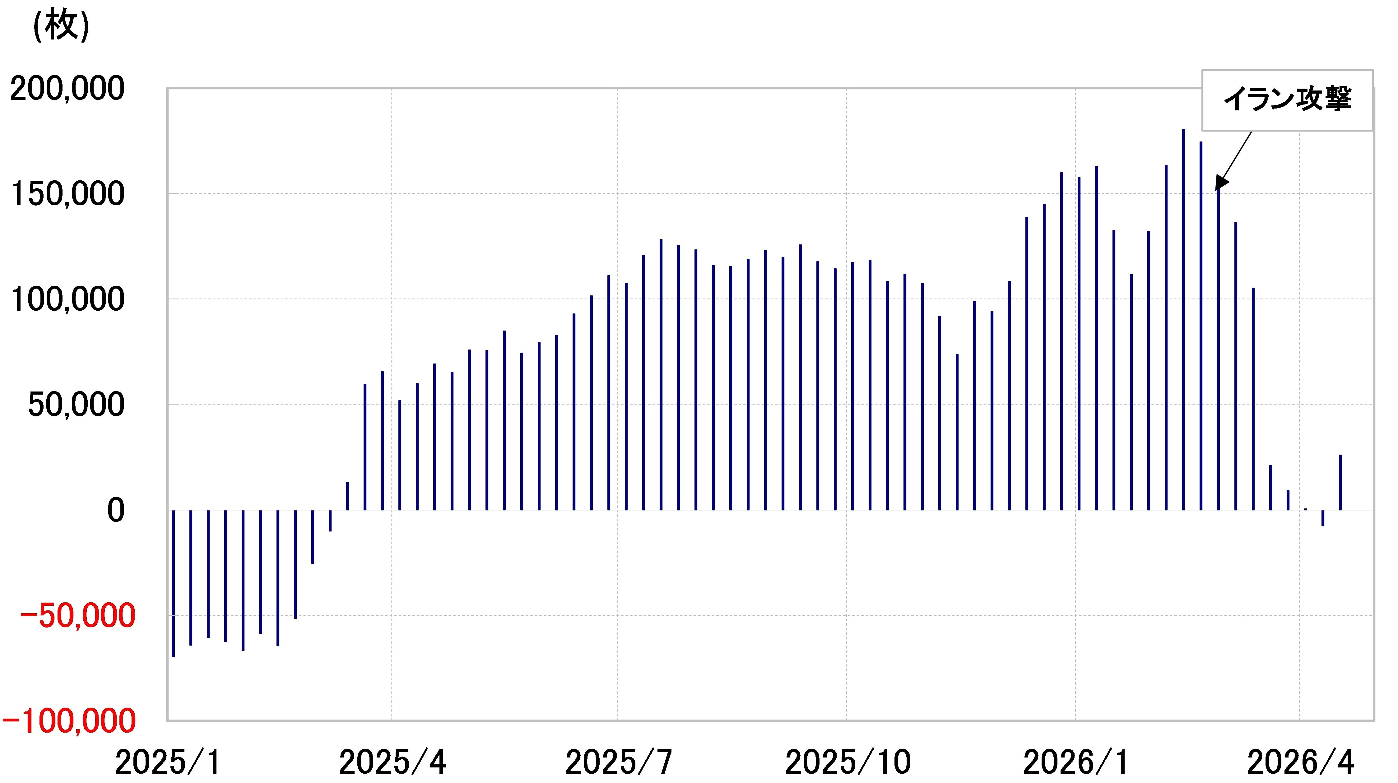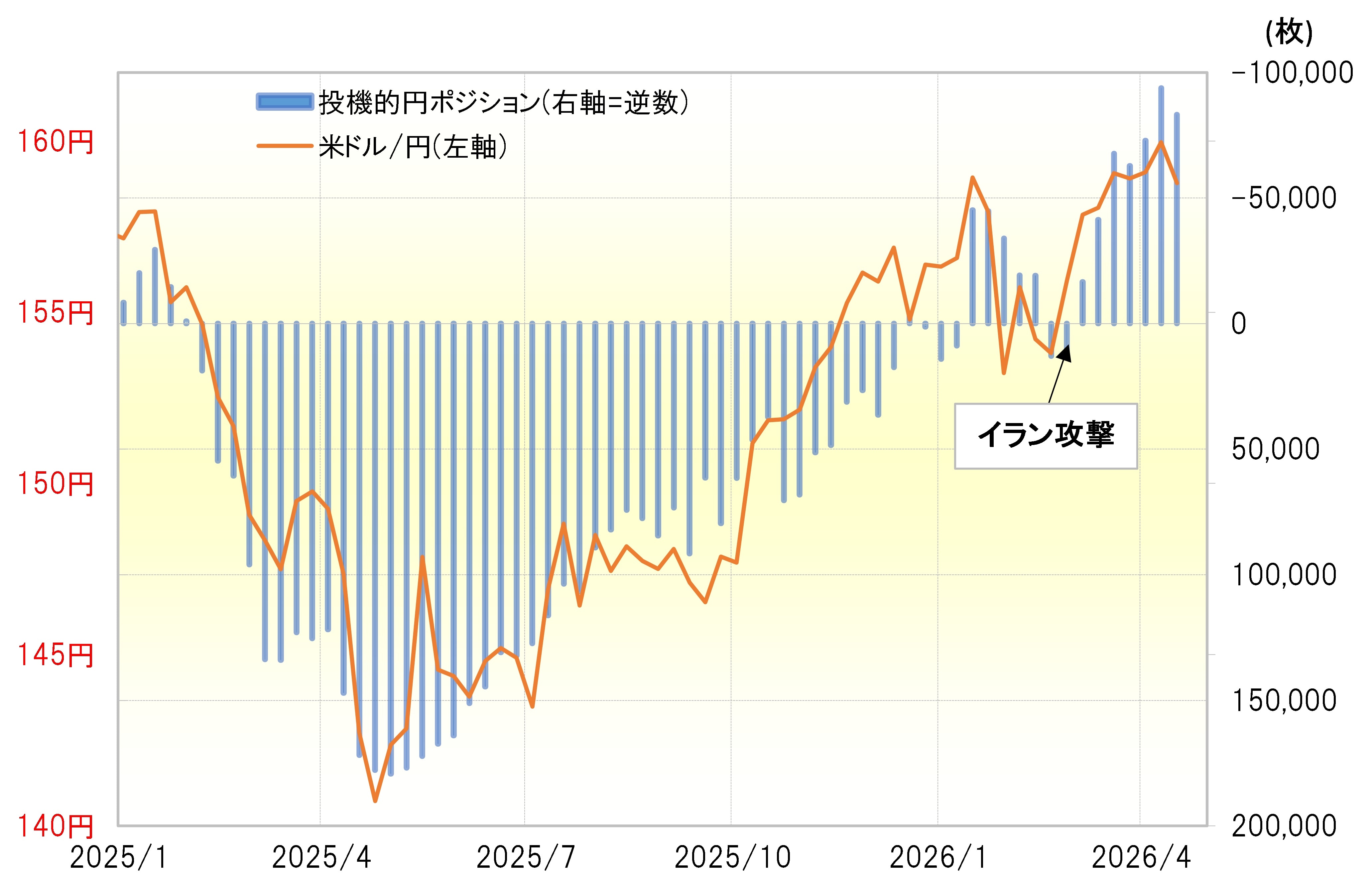 ただ、2025年のトランプ政権開始以降、円売りに慎重だった投機筋がイラン戦争中の円安に積極的に関与する形になっている可能性はありそうです。すでに見てきたように、米ドルに対するユーロ高に比べて円高への戻りの鈍い状況が続いたわけですが、それは投機筋の円売りも一因ではないでしょうか。そうであれば、投機筋が円売りを続けるか、それとも円買いに転換するかは、円安修正の1つの鍵になる可能性があるのではないでしょうか。