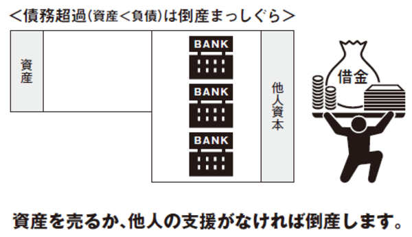個人でいえば、カードの支払や借入返済に追われている状態で、行く末は自己破産です。