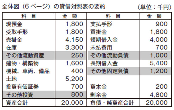 流動資産、固定資産、流動負債、固定負債の区分ごとに、それぞれ「その他」をつくってください。