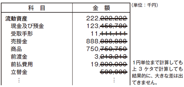 ②ケタを削って、桁数を3ケタ程度にします。切り捨て、四捨五入でもかまいませんがケタを減らしてください。削るときは下3ケタ、あるいは6ケタを削りましょう。