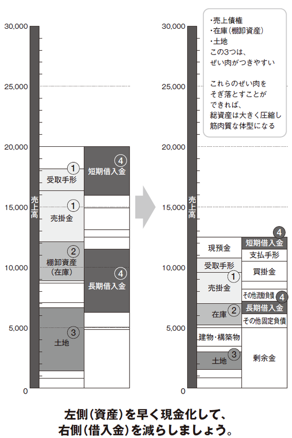 この※含み損を抱えた資産こそ、ぜい肉です。これを取り除いて、ムダのない、筋肉質の会社にすること、これが大切なのです。