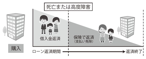 この保険は契約者が「死亡または高度障害状態になったとき」に、保険金でローンの残債を相殺します。つまり家族には無借金の状態で家賃収入が得られるマンションを残すことができます。
