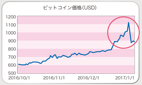 ビットコインはその仕組み上、市場への供給ペースがほぼ一定に保たれていることから、需要の変動によって価格が大きく変動しやすい(ボラティリティが高い)。そのため、取引の7~8割を占めるといわれる中国人投資家の動向がビットコイン価格の鍵を握っていると考えられている。