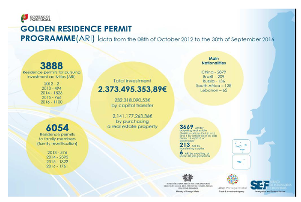 そこで選択肢の一つとしてお勧めできるのが、ポルトガルの「黄金居住ビザ」プログラムです。元来は、経済危機からの回復がなかなか達成できず、経済状態が悪かった2012年に、外国人からの投資を誘致することを目的として創設されたプログラムです。その後、何度か法改正が行われるなど、内容の変更はありましたが、海外移住希望者の多い中国人やロシア人、母国語が共通であるブラジル人を中心に、多くの申請があります。