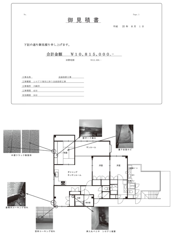 なんと、ただの雨漏れと思っていたら、シロアリ事件に発展。そのリフォーム費用は驚いたことに1100万円!