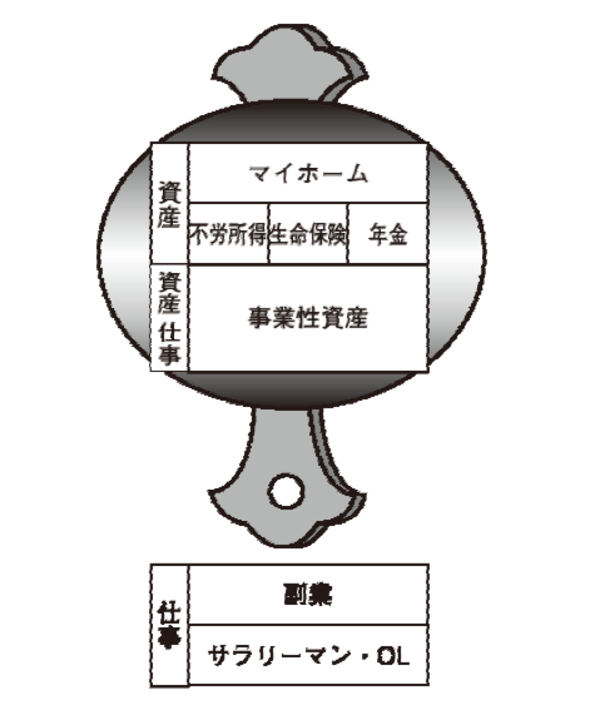 私たちの目標は、サラリーマンと副業をしてマイホームと事業性資産の取得をすることにあります。事業性資産とはアパートや貸家である事業用不動産ですが、これは、不労所得と生命保険と年金をもたらしてくれる「打ち出の小槌」になります。