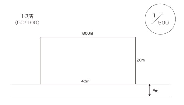◆街路・画地:幅員5m道路で間口40m、奥行き20m