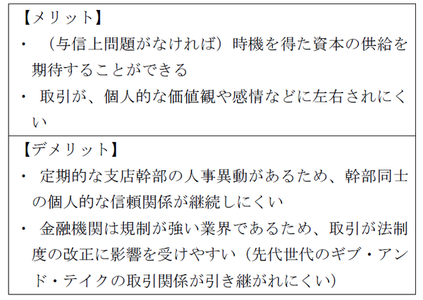 前回取り上げた顧客や仕入先との取引では、長期的関係(取引上の取り決めを含む)が重視されました。後継者は、事業承継次第では先代世代の恩恵(先代世代と取引先との信頼関係による利益)を受けることができました。金融機関との取引上の特徴は、顧客や仕入先との取引と大きく異なるといえるでしょう。