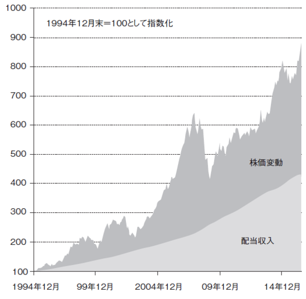 株式投資から得られるリターンは、株価の値上がりだけと思う方もいるかもしれませんが、もう一つ大事なリターンの要素が配当です。企業が決算を行い、その期の収益に応じて株主に支払うお金が配当金です。この配当金はもちろん業績が悪ければゼロになることもありますが、株価の値上がり・値下がりとは異なり、投資期間が長くなるほど積み上がっていき、トータル・リターンを下支えしてくれます(図表2)。この配当が相対的に高い株式を、公益株式の中から選んで投資するよう設計したのがこの投資信託なのです。