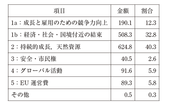 EUの予算は分野別に5項目計上されており、項目1は更にabの2つに分けられている。