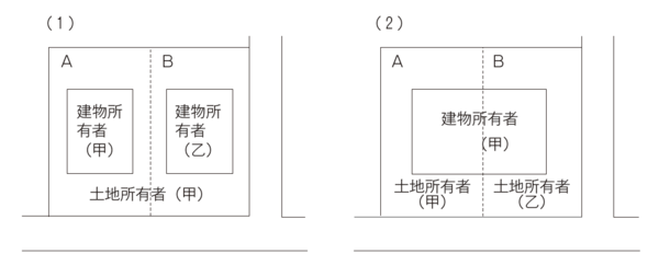 また、図表2の(2)のように、使用貸借で借り受けた宅地を自己の所有する宅地と一体として利用している場合であっても、甲は、B土地に客観的な交換価値がある権利を有しないことから、A土地、B土地をそれぞれ1画地の宅地として評価します。