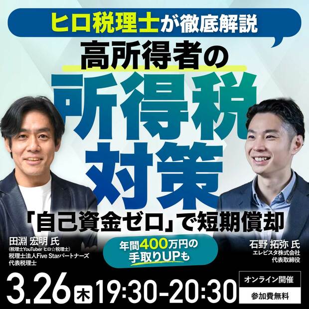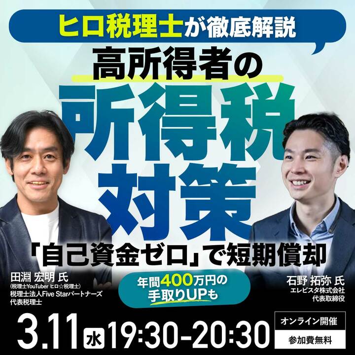 【ヒロ税理士が徹底解説】高所得者の所得税対策 「自己資金ゼロ -