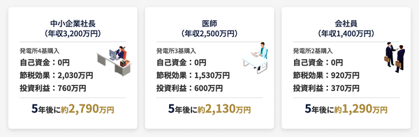 ※フルローンで発電所3基(6,000万円)以上の購入を想定しております。